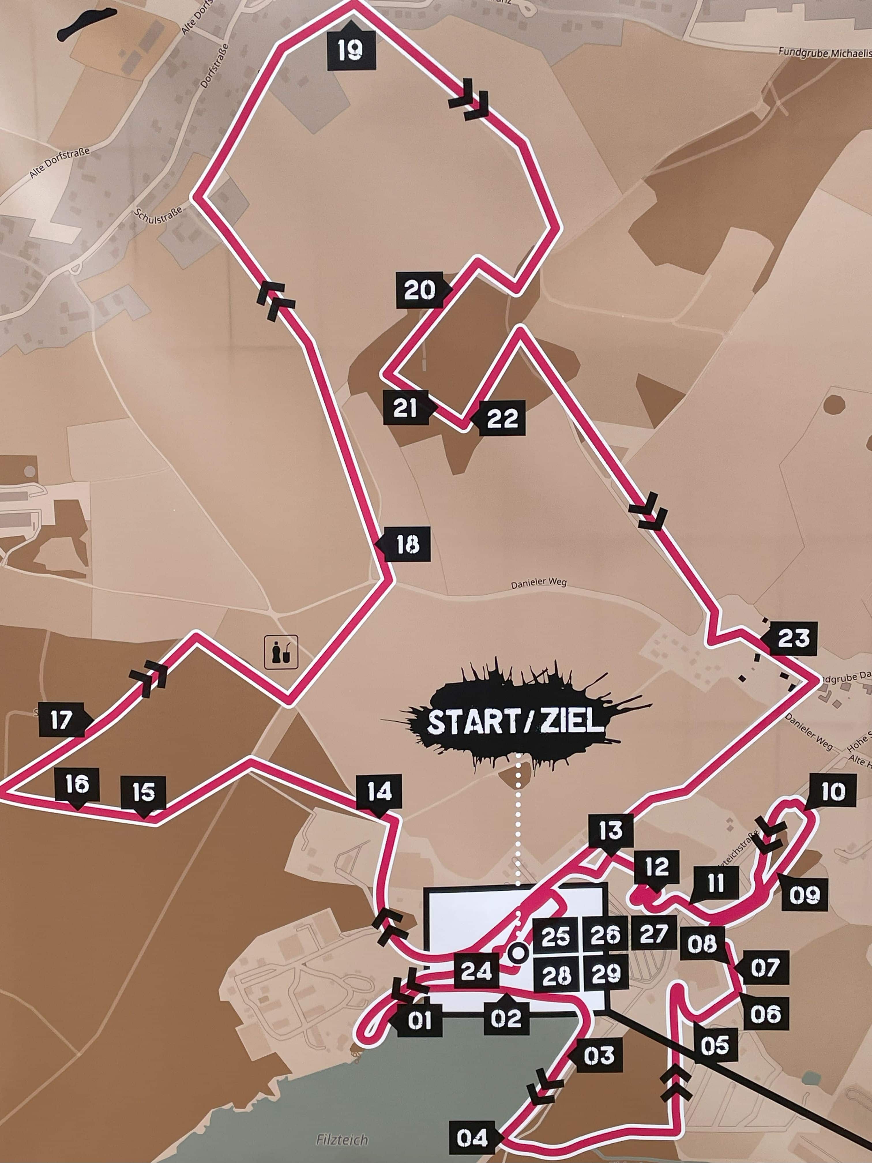 Kurze Aufwärmphase und da geht es auch schon los – eines Strecke von 18km. Ein Rundkurs von 9km, das ganze also zweimal mit je 29 Hindernissen – ein Wahnsinnshammer!